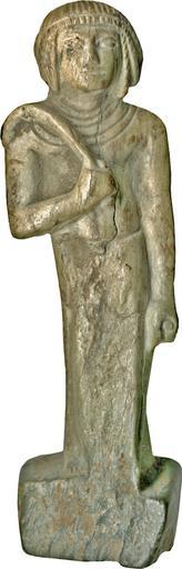| Keywords: Egyptian - Male Figure - Walters 2266.jpg This male figure is carved in full relief and probably depicts a king He holds a flexible sceptre in his right hand Front broken including part of shendyt lower half of left leg and left foot; face rubbed Rectangular base with rear column rounded at top reaching to crown of head Left leg in advance Left hand at side holding cloth Right hand before breast holding pliable sceptre or stalk of flowers Short coiffure divided into three parts Short shendyt and has a collar -- Steindorff Catalogue 1946 between 1550 1069 BC New Kingdom light green speckled stone cm 7 02 1 83 1 96 accession number 22 66 37624 Dikran Kelekian New York and Paris date and mode of acquisition unknown Henry Walters Baltimore 1929 mode of acquisition unknown Walters Art Museum Henry Walters Acquired by Henry Walters 1929 place of origin Egypt Walters Art Museum license Ancient Egyptian statuettes in the Walters Art Museum Media contributed by the Walters Art Museum needs category review |