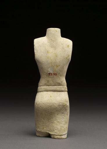 | Keywords: Egyptian - Model Torso - Walters 2232 - Back.jpg Sculpture models such as this example were used by artists in the Ptolemaic and Roman periods This model appears to be complete despite the lack of head arms and lower legs The grid lines on the legs helped to keep the proportions The statue is dressed with a shendit Such models may also have served a votive purpose in a temple setting ca 150 27 BC Greco-Roman limestone cm 17 3 6 2 4 7 accession number 22 32 12670 From Dendera Dikran Kelekian New York and Paris Henry Walters city Baltimore Walters Art Museum Henry Walters Acquired by Henry Walters 1912 place of origin Paris France Walters Art Museum license Ancient Egyptian statues in the Walters Art Museum Media contributed by the Walters Art Museum needs category review |