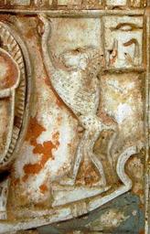 | Keywords: Egyptian - Pectoral with Scarab - Walters 4291 - Front Detail B.jpg The ancient Egyptians believed that the dung beetle the Scarabaeus sacer was one of the manifestations of the sun god Representations of these beetles were used as amulets and for ritual or administrative purposes The rectangular shrine shaped pectoral has a large scarab in the center The front displays an adoration scene scarab and baboons in a sun barque The shrine has a cavetto cornice at the top with an incised winged sun disk painted red and a base with lotus flower frieze in red and blue The central scene is additionally framed on the top and side by a color key whose colors are mostly gone The motif displays a scarab in a barque flanked by two baboons in adoration gesture; the mantle of the baboons shows a crossed hatched pattern All three figures have an extra base the one of the scarab decorated with a reed pattern Below the barque is a section with a herringbone pattern representing water In the right and left corner are short text columns with the name Wsjr Osiris The space around the figures was filled with red below the barque with blue color paste The motif is antithetically arranged that the baboons are facing the scarab The scarab's head plates and clypeus front plate are carved; pronotum dorsal plate of the prothorax elytron wing cases and the division between the wing cases are marked by raised borders to confine the color filling pronotum red wing cases blue The extremities are carved and have hatch notches on the upper sides for the tibial teeth and the pilosity hair The reverse of the shrine shaped pectoral displays an adoration scene with Osiris and private worshipper The flat shrine is framed by a cavetto cornice and color key borders with four-line dividers The central scene displays the god Osiris on the left crowned with double-feathers ram horns and cobra serpents He holds crock and flail in his hands and is seated on a block throne with a cushion overlapping the back His name is written in front of his crown The figure on the right side represents the female owner of the pectoral; she wears a long pleated dress a long wig that does not cover the ears and has a lotus flower on her head; she raises her arms in an adoration gesture Above her hands is an inscription containing the name of Osiris Between both figures is an empty oval frame which represents the juvenile sun resting on an dd-pillar with two arms embracing the sun The dominating icon of the scene is the big oval in the center and the two figures to the right and left look slightly built in comparison to it The figure of Osiris fills the whole height of the space including his base and crown indicating an equal importance to the scarab The front and back are executed in raised and sunk relief; the front has also colored past filling The scarab on the front is dominant by its size central position and raised round sculpted forms; the two flanking baboons are also prominent by their size and the very high raised relief; all the other details of shrine shaped pectoral are executed in high relief except the incised wings of the sun disc in the cavetto cornice; the layout is well organized but the scarab and its base in the barque are lopsided; noteworthy are the rectangular raised sections in the upper corners of the image field with the name of Osiris Only the blue and red color has been preserved and it is important to realize that only the scarab has a three-color spectrum red blue and white or yellow/gold The reverse side is more flatly executed the figures are carved in high relief; there are as on the other side two raised rectangular text fields for the incised inscriptions The figures are slender and slightly rough; the garments are detailed with very fine hatch line or dot pattern; the layout is balanced but the figure of Osiris seems slim in comparison to the worshiping lady due to his large crown and high throne base; moreover the central oval frame which originally held a scarab is lopsided The scarab-pectoral is a funerary amulet which was originally attached to mummy wrappings The amulet should assure the renewal of the deceased in the afterlife similar to that of the god Osiris which is why the inscription which names the seated god is the same as the inscription which identifies the worshipping deceased The combination of sun-oval and dd-pillar of Osiris represents the unification of both deities and of the cyclical and the linear aspects of time and eternity; the result is the renewal of both deities of this and the other world as well as the deceased While the reverse of the pectoral focuses on the unification process the front represents the renewal scarab with baboons in the barque and rising of the sun winged sun disc The amulet should guarantee the meeting of the deceased with the sun god and his consequential renewal It is striking that on both sides the scarab is lopsided; it seems to be unlikely that this was just a mistake of a less qualified artist Most probably the lopsided placement has to do with the idea of the sloping celestial path which can be expressed by a lopsided sky hieroglyph The motif of the scarab in the barque flanked by solar baboons is rare on private pectorals of the New Kingdom and more popular on scarabs Walters 42 396 or finger rings see between 1292 1070 BC New Kingdom steatite with color inlays cm 12 5 10 2 9 5 accession number 42 91 14857 Dikran Kelekian New York and Paris date and mode of acquisition unknown Henry Walters city Baltimore Walters Art Museum Henry Walters Acquired by Henry Walters 1929 Translation Osiris Jewelry - Ancient to Modern The Walters Art Gallery Baltimore 1979-1980 Objects of Adornment Five Thousand Years of Jewelry from the Walters Art Gallery Baltimore Cooper-Hewitt National Design Museum New York; Chrysler Museum of Art Norfolk; Carnegie Museum of Art Pittsburgh; San Antonio Museum of Art San Antonio; Philbrook Museum of Art Tulsa; Honolulu Academy 