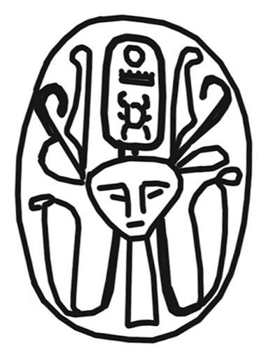 | Keywords: Egyptian - Ring with Scarab - Walters 542208 - Impression.jpg In this type of ring the scarab bezel is fastened by passing the ends of the bronze hoop pulled out into fine wire through the perforation and twisting them around the hoop on the opposite side The face of the glazed steatite scarab is decorated with a stylized head of the cow-eared goddess Hathor under a cartouche of King Thutmosis III between 1479 1425 BC New Kingdom steatite with glaze bronze cm 0 4 0 8 1 1 ; Inner Diam cm 2 2 ; Outer Diam cm 2 5 accession number 54 2208 11094 Henry Walters city Baltimore Walters Art Museum Henry Walters Acquired by Henry Walters 1929 Translation Men-kheper-Re Jewelry - Ancient to Modern The Walters Art Gallery Baltimore 1979-1980 place of origin Egypt Walters Art Museum license 2D Ancient Egyptian scarabs in the Walters Art Museum Hieroglyphs on scarabs Ancient Egyptian finger rings in the Walters Art Museum Cartouches of Thutmosis III Scarabs of Thutmosis III |