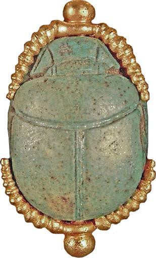 | Keywords: Egyptian - Scarab from Egyptian-Style Necklace - Walters 57153013 - Back.jpg The ancient Egyptians believed that the dung beetle the Scarabaeus sacer was one of the manifestations of the sun god Representations of these beetles were used as amulets and for ritual or administrative purposes This scarab has a bottom inscription with a vertical cartouche containing the name of King Thutmose I The royal cartouche is combined with a large bee and a very small sun disc; an oval line frames the whole inscription The highest point of the back is the elytron wing cases Double lines separate pronotum dorsal plate of the protorax and elytron as well as the wing cases The incised lines arge thick and the line flow regular The semicircular head is flanked by quarter-spherical eyes which are separated from the head with double lines The trapezoidal side plates have outer borderlines and a large clypeus front plate is marked The sides show deeply carved extremities in natural form The round-oval base is symmetrical The scarab is longitudinally pierced was originally mounted or threaded and used as an amulet It should secure royal authority cartouche and divine solar kingship bee for this ruler and provide a private owner with the royal patronage of the current ruler The combination of a large bee with a small sun disk behind its body is rare The round-oval forms of the scarab as well as the shape of the bee with very long curved feelers are typical for the early 18th Dynasty between 1504 1492 BC New Kingdom faience with green-blue glaze cm 1 5 1 2 8 accession number 57 1530 13 80010 Henry Walters Baltimore 1903 mode of acquisition unknown Walters Art Museum Henry Walters Acquired by Henry Walters 1903 Translation Aa-kheper-ka-Re / Solar King Jewelry - Ancient to Modern The Walters Art Gallery Baltimore 1979-1980 place of origin Egypt Walters Art Museum license Ancient Egyptian scarabs in the Walters Art Museum Media contributed by the Walters Art Museum needs category review |