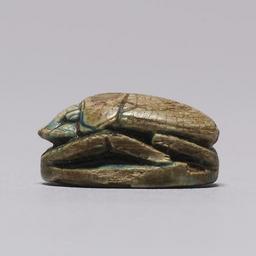 | Keywords: Egyptian - Scarab of Hatshepsut - Walters 4260 - Left Side.jpg The ancient Egyptians believed that the dung beetle the Scarabaeus sacer was one of the manifestations of the sun god Representations of these beetles were used as amulets and for ritual or administrative purposes This scarab has a vertically arranged left reading bottom inscription framed by an oval line It contains the name of the female pharaoh Hatshepsut and an epithet expressing her relation to the god Amun The name of Amun is dominant by size and positioning in comparison to the royal name The hieroglyphs are well carved but slightly irregular and the forms and arrangement typical for the early 18th Dynasty The highest point of the scarabs back is the pronotum dorsal plate of the protorax Pronotum and elytron wing cases have single border and separation lines V-shaped shoulder marks represent the humeral callosities shoulder thickenings The rectangular head has a semicircular insert and is flanked by two-stage quarter-spherical eyes The trapezoidal side plates have curved outer edges and borderlines and the clypeus front plate four frontal serrations and two central base notches The extremities have natural form and show vertical hatch lines on the upper side of the fore- and midlegs for the tibial teeth and pilosity hair The oval base is symmetrical The scarab is longitudinally pierced was originally mounted or threaded and used as an amulet It should secure the special relation between Hatshepsut and the god Amun and provide a private owner with her royal patronage There are many different variations of scarabs with the throne name of Hatshepsut and a variety of different epithets; the epithet beloved of Amun was not only for her a very popular one between 1479 1458 BC New Kingdom light red-brown steatite with green-blue glaze cm 1 4 1 0 7 accession number 42 60 31419 Henry Walters Baltimore date and mode of acquisition unknown Walters Art Museum Henry Walters Acquired by Henry Walters Translation Throne name of the female King Hatshepsut without cartouche and combined with an Amun related epithet Maat-ka-Re beloved of Amun place of origin Egypt Walters Art Museum license Ancient Egyptian scarabs in the Walters Art Museum Hatshepsut Media contributed by the Walters Art Museum needs category review |