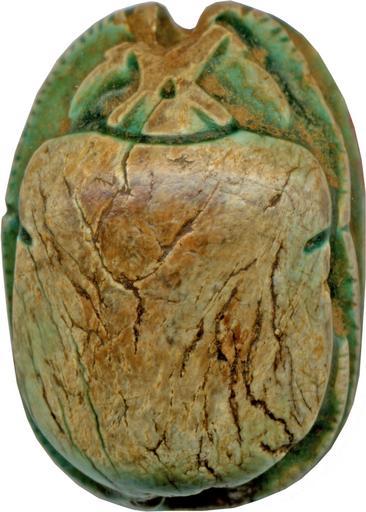 | Keywords: Egyptian - Scarab with Perfect Existence Signs - Walters 4237 - Back.jpg This steatite scarab has a flat underside with a horizontally arranged design with three script signs two repeated The design of the back is simple with slightly unbalanced proportions The workmanship of the piece is good and it is simply made This amulet has a recreative and /or good luck connotation; the duplication of the signs should strengthen the effect The third sign is either a fill character or refers to the all-inclusiveness of 'perfect existence ' The scarab originally would have been mounted or threaded The combination of signs on the bottom of this scarab is not common ca 1648 1539 BC Second Intermediate; Hyksos; late MB IIB beige-brown steatite with green-blue glaze cm 1 1 5 2 1 accession number 42 37 36102 Henry Walters Baltimore date and mode of acquisition unknown Walters Art Museum Henry Walters Acquired by Henry Walters Translation Sign combination two scrabs above an nb-basket flanked by nfr-signs Perfect existence perfect existence place of origin Egypt Walters Art Museum license Ancient Egyptian scarabs in the Walters Art Museum Media contributed by the Walters Art Museum needs category review |