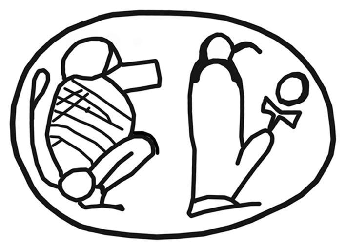 Keywords: Egyptian - Scarab with Two Different Images of Thoth - Walters 42394 - Impression.jpg This steatite scarab has a flat underside with a horizontally arranged design of two different images of a god Thoth The first figure has a human body and ibis head and the second is baboon-shaped with hands on the knees and tail raised in back The top design is detailed The piece is poorly made and the workmanship is rough The piece functioned as an individualized provider amulet and was originally mounted or threaded The amulet should secure the support of Thoth It is possible that it had a funerary function and that Thoth is depicted in two moon god manifestations although no moon disk is depicted above the head of one of the figures In this case the piece would stand for renewal The combination of two different representations of Thoth is uncommon between 646 342 BC Late Period black steatite cm 0 7 1 2 1 7 accession number 42 394 5495 Henry Walters Baltimore date and mode of acquisition unknown Walters Art Museum Henry Walters Acquired by Henry Walters place of origin Egypt Walters Art Museum license 2D Ancient Egyptian scarabs in the Walters Art Museum Hieroglyphs on scarabs Media contributed by the Walters Art Museum needs category review |