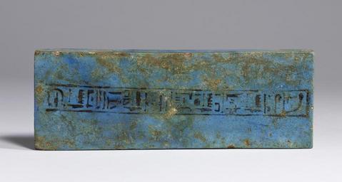 Keywords: Egyptian - "Senet" Board - Walters 48408 - Back.jpg Egyptians enjoyed playing board games especially senet or passing During the 18th dynasty the game acquired religious significance which transformed it into a simulation of the soul's journey through the underworld to achieve immortality Throw sticks much like dice determined a player's moves and winning required both skill and luck This senet game board of 30 squares required 14 game pieces like these spool- and cone-shaped pieces between 1307 1070 BC New Kingdom Egyptian faience with glaze cm 26 5 9 1 accession number 48 408 1369 Rev William MacGregor Collection Sale Sotheby's London 1922 no 263 Dikran Kelekian Paris and New York Henry Walters city Baltimore Walters Art Museum Henry Walters Acquired by Henry Walters 1923 Translation First of the Priests of Amun One who is in the place of the Temple of Amun-Ré an acolyte of Amun-Ré King of the gods Nesi-amun-ipet the Justified of Voice the gift of Amun himself place of origin Abydos present-day El Balyana Egypt Walters Art Museum license Ancient Egyptian art in the Walters Art Museum Ancient Egyptian faience in the Walters Art Museum Senet board game Works of the Egyptian New Kingdom |