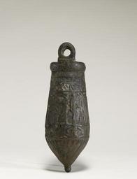 | Keywords: Egyptian - Situla with Procession of Divinities and Worshippers - Walters 541208 - Side A.jpg Situlae were vessels used to pour offerings of milk or water in purification rituals They take the form of a human breast and were associated with the goddess Isis Incense burners were also used extensively in temple and funerary ceremonies Incense considered a purifying element was offered to honor the gods kings and the dead This situla is decorated in raised relief The central frieze depicts a series of striding deities and worshipers The base features a lotus petal motif a symbol of rebirth ca 300 30 BC Greco-Roman bronze cm 20 6 7 3 accession number 54 1208 22421 Henry Walters Baltimore by purchase Walters Art Museum Henry Walters Acquired by Henry Walters place of origin Egypt Walters Art Museum license Ancient Egyptian art in the Walters Art Museum Media contributed by the Walters Art Museum needs category review Situla |