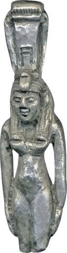 | Keywords: Egyptian - Standing Nehemet-Away - Walters 571479.jpg This cast silver pendant represents the goddess Nehemet-Away standing with her hands at her side She has a uraeus on her wig and wears a sistrum her symbol as a crown There is a large loop behind the sistrum and her legs are broken between 1070 332 BC Third Intermediate-Late Period cast silver cm 2 96 1 2 1 24 accession number 57 1479 3778 Henry Walters Baltimore date and mode of acquisition unknown Walters Art Museum Henry Walters Acquired by Henry Walters Jewelry - Ancient to Modern The Walters Art Gallery Baltimore 1979-1980 place of origin Egypt Walters Art Museum license Ancient Egyptian amulets in the Walters Art Museum Ancient Egyptian jewellery in the Walters Art Museum Media contributed by the Walters Art Museum needs category review |