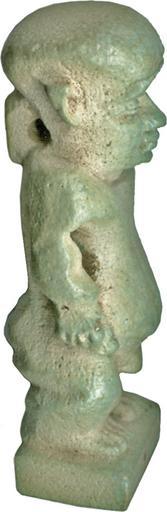 | Keywords: Egyptian - Standing Pataikos - Walters 481614 - Right.jpg This dwarf-like protective deity was very popular in ancient Egypt; amulets in the shape of this god were particularly popular from the Third Intermediate period The Greek name Pataikos comes from a passage in the writings of Herodotus ca 5th century BC who used this term to describe a Phoenician protective dwarf-like image The Egyptian Pataikos is a special manifestation of the creator god Ptah and the dwarf-like appearance symbolizes his magical power This amulet presents the standard type of Pataikos as a standing nude dwarf with his clenched hands at his sides and a large dominating head late 4th-3rd century BC Greco-Roman Egyptian faience with green glaze cm 4 4 1 6 1 15 accession number 48 1614 30653 Maurice Nahman Cairo Henry Walters city Baltimore Walters Art Museum Henry Walters Acquired by Henry Walters 1930 Daily Magic in Ancient Egypt The Walters Art Museum Baltimore 2006-2007 place of origin Egypt Walters Art Museum license Ancient Egyptian amulets in the Walters Art Museum Ancient Egyptian faience in the Walters Art Museum Pataikos |
