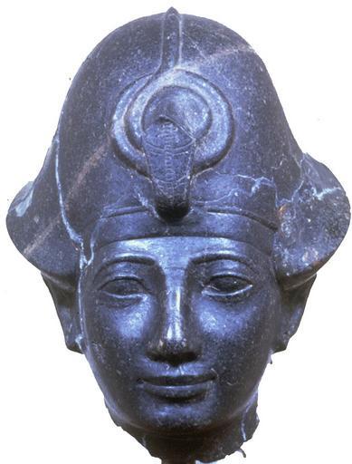 | Keywords: Egyptian - Statue Head of King Amenhotep II with the "Blue Crown" - Walters 22229.jpg The khepresh or blue crown appears frequently in royal sculpture of the New Kingdom The king wore this crown on campaigns or in ceremonial processions As with all royal headdresses the coiled protective uraeus serpent appears at the brow between 1427 1401 BC New Kingdom granodiorite cm 29 21 23 5 ; mount cm 15 14 3 14 3 accession number 22 229 32992 Dikran Kelekian New York and Paris Henry Walters city Baltimore Walters Art Museum 1931 by bequest Acquired by Henry Walters 1913 The Arts of Man Dallas Museum of Art Dallas 1962 place of origin Egypt Walters Art Museum license Ancient Egyptian statues in the Walters Art Museum Statues of Amenhotep II Khepresh |