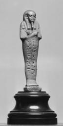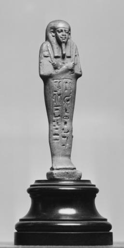 | Keywords: Egyptian - Ushabti of Pa-dj-jmen-nisut--netjeru- - Walters 48391 - Group.jpg Ushabti meaning answerers which resemble miniature mummies were made of different materials such as wood or Egyptian faience ceramic-like material These funerary statuettes represent the individual whom they accompanied into the tomb and the afterlife If a god called on the deceased to perform labor in the afterlife this servant substitute magically invoked by a traditional spell would answer and do the work on behalf of the tomb's owner This ushabti-figure displays its owner with a long wig and a divine beard a long chin beard with a curved lower end with hoes in his hands for the work in the fields Two columns of inscriptions are on his frontal body below the arms ca 400 360 BC Late Period faience with blue glaze cm 11 8 accession number 48 391 16560 William T / Henry Walters Collection Baltimore Walters Art Museum Henry Walters Acquired by William T or Henry Walters Translation The Osiris Pa-dj-jmen-nisut-netjeru born of Ta-djt-Aset-men may be safe place of origin Egypt Walters Art Museum license Ushabti in the Walters Art Museum Ancient Egyptian faience in the Walters Art Museum Works of the Egyptian late period |