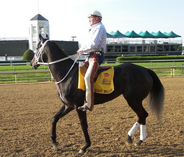 MAKE A MEME View Large Image Eight Bells01.JPG en Eight Belles' work-out at Churchill Downs in preparation for the 134 Kentucky Derby May 1 2008 ridden by her trainer Larry Jones own Jerry Yates 2008-05-01 Eight Belles Horse trainers from the United States Horses in ...