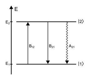 | Keywords: Einsteinkoeffizienten.svg  SVG illustration of the Einstein AB-Coefficients B<sub>12</sub> is the coefficient of the stimulated absorption while B<sub>21</sub> is the coefficient for the stimulated emission and A<sub>21</sub> is the spontaneous emission SVG-Illustration der Einstein AB-Koeffizienten B<sub>12</sub> ist der Koeffizient der stimulierten Absorbtion B<sub>21</sub> der Koeffizient der stimulierten Emission und A<sub>21</sub> der Koeffizient der spontanen Emission 50 2012-07-29 11 29 UTC Einsteinkoeffizienten-draft jpg Michael F Schönitzer derivative work Daniel FR Remark Text is paths; Font Arial For editing requests you can contact Daniel FR Cc-zero Original upload log This image is a derivative work of the following images File Einsteinkoeffizienten-draft jpg licensed with Cc-zero 2012-07-28T11 09 29Z MichaelSchoenitzer 1169x895 45847 Bytes <nowiki> Draft for an SVG of the Einstein AB-Coefficients ~~~~~ ~~~ </nowiki> Uploaded with derivativeFX Energy diagrams Atomic physics Spontaneous emission |