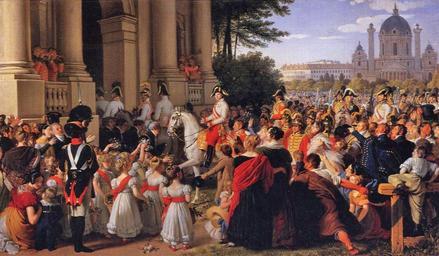 | Keywords: Einzug des Kaisers Franz I. (II.) von Österreich (1768-1835) in Wien nach dem Pariser Frieden am 16.Juni 1814 ( vor 1828 ).jpg Artwork de Einzug des Kaisers Franz I II von Österreich 1768-1835 in Wien nach dem Pariser Frieden am 16 Juni 1814 it Ingresso dell'Imperatore Francesco I d'Austria in Vienna il 16 giugno 1814 dopo la pace di Parigi oil canvas cm 38 5 65 Wien Österreichischen Galerie Belvedere http //bilddatenbank belvedere at/sammlung php obid 4997 vor 1828 unbezeichnet PD-Art Portrait paintings of Francis II Holy Roman Emperor Paintings in the Hofburg 16 June 1814 events 1828 paintings |
