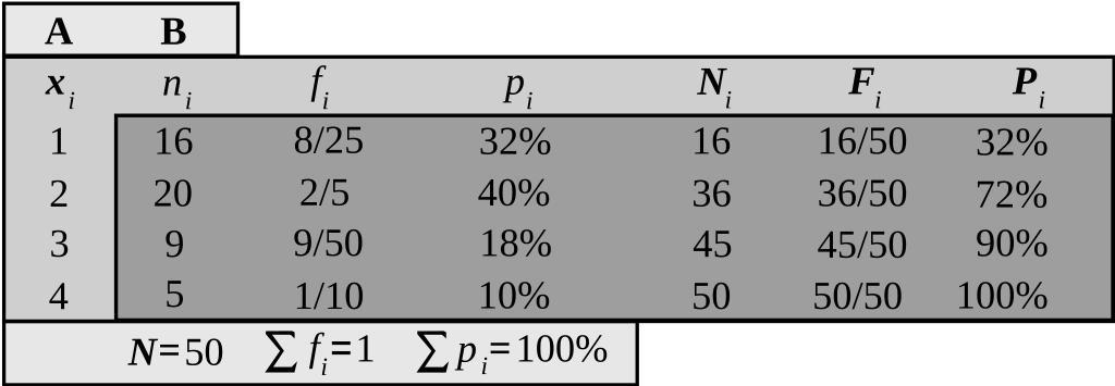 Keywords: Ej frecuencia estadistica.svg Examples of statistical frequency absolute frequencies relative frequencies Own 2006-09-27 Alberto Domene Vasallo Public Domain Frequency tables