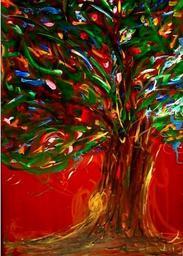 | Keywords:  Muchas leyendas hablan de un Árbol de la Vida, que crece sobre la tierra y da vida a dioses y a seres humanos. Se habla de un Árbol del Mundo, a menudo vinculado a un "centro" de la Tierra. Es probablemente el mito humano más antiguo, y tal vez un mito universal. Además, lo común es considerar que tal árbol (cósmico si así se le entendiese) tiene sus raíces en el mundo inferior y sus ramas en lo más alto del firmamento. Por lo que se ha considerado siempre como natural y sobrenatural al mismo tiempo, es decir, perteneciente a la tierra pero de algún modo no de la tierra misma. Entrar en contacto con este árbol (ya sea alcanzándole para vivir en o sobre él), suele significar regeneración o renacimiento de un individuo. Sus hojas son explosión de colores y destellos que viajan a velocidad estelar. Tiene la firmeza de la realidad en sus raíces y la fuerza titánica de la razón que le mantiene en pie, atraviesa en vertical conciente y subconciente, mientras sus ramas tocando el cielo, describen movimientos que flanquean el inexorable avance de la línea secuencial que martiriza el corazón, y la indeleble huella de la memoria en cual se funda, agitándose entre ideas y visiones del pasado, el presente y el futuro. |