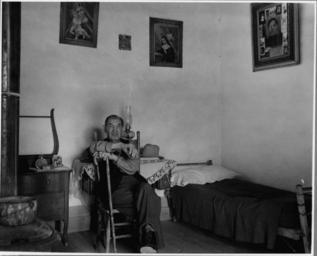 Keywords: El Cerrito, San Miguel County, New Mexico. Rooms in all these houses differ considerably as to furn . . . - NARA - 521179.jpg Scope and content Full caption reads as follows El Cerrito San Miguel County New Mexico Rooms in all these houses differ considerably as to furniture arrangement and shape but almost all of them are surprisingly clean and well kept The influence of the church on the lives of these people is very strongly reflected in the decorating to be seen on the walls of their homes Notice that nearly every one of these pictures shows some sort of religious symbol This man is descended from one of the oldest families in the village And his house is also one of the oldest there The furniture is extremely simple and only barely sufficient for the needs of his very large family Notice however that it includes an old-fashioned sewing machine There are even more than the usual number of religious pictures General notes 521179 Local identifier 83-G-37827 Department of Agriculture Bureau of Agricultural Economics Division of Economic Information ca 1922 - ca 1953 NARA-Author Rusinow Irving Photographer 5307166 <br /> Still Picture Records Section Special Media Archives Services Division NWCS-S National Archives at College Park 8601 Adelphi Road College Park MD 20740-6001 1941 04 10 - 1941 04 16 Record group Record Group 83 Records of the Bureau of Agricultural Economics 1876 - 1959 Record group ARC 412 Photographic Prints Documenting Programs and Activities of the Bureau of Agricultural Economics and Predecessor Agencies compiled ca 1922 - ca 1947 documenting the period ca 1911 - ca 1947 Series ARC 521048 File unit File unit ARC Variant control numbers NAIL Control Number NWDNS-83-G-37827 Other versions <gallery> File El_Cerrito _San_Miguel_County _New_Mexico _Rooms_in_all_these_houses_differ_considerably_as_to_furn_ _ _ _-_NARA_-_521179 tif tif File El_Cerrito _San_Miguel_County _New_Mexico _Rooms_in_all_these_houses_differ_considerably_as_to_furn_ _ _ _-_NARA_-_521179 jpg jpg </gallery> NARA-cooperation PD-USGov Irving Rusinow El Cerrito New Mexico