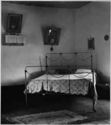 Keywords: El Cerrito, San Miguel County, New Mexico. Rooms in all these houses differ considerably as to furn . . . - NARA - 521187.jpg Scope and content Full caption reads as follows El Cerrito San Miguel County New Mexico Rooms in all these houses differ considerably as to furniture arrangement and shape but almost all of them are surprisingly clean and well kept The influence of the church on the lives of these people is very strongly reflected in the decorating to be seen on the walls of their homes Notice that nearly every one of these pictures shows some sort of religious symbol Details of interiors The bedroom is typical with its iron bedsteads and heavy clother trunks Crowding is not a problem in El Cerrito where a number of houses stand vacant and certain members of almost every family are away trying to earn a little money as day laborers General notes 521187 Local identifier 83-G-37835 Department of Agriculture Bureau of Agricultural Economics Division of Economic Information ca 1922 - ca 1953 NARA-Author Rusinow Irving Photographer 5307166 <br /> Still Picture Records Section Special Media Archives Services Division NWCS-S National Archives at College Park 8601 Adelphi Road College Park MD 20740-6001 1941 04 10 - 1941 04 16 Record group Record Group 83 Records of the Bureau of Agricultural Economics 1876 - 1959 Record group ARC 412 Photographic Prints Documenting Programs and Activities of the Bureau of Agricultural Economics and Predecessor Agencies compiled ca 1922 - ca 1947 documenting the period ca 1911 - ca 1947 Series ARC 521048 File unit File unit ARC Variant control numbers NAIL Control Number NWDNS-83-G-37835 Other versions <gallery> File El_Cerrito _San_Miguel_County _New_Mexico _Rooms_in_all_these_houses_differ_considerably_as_to_furn_ _ _ _-_NARA_-_521187 tif tif File El_Cerrito _San_Miguel_County _New_Mexico _Rooms_in_all_these_houses_differ_considerably_as_to_furn_ _ _ _-_NARA_-_521187 jpg jpg </gallery> NARA-cooperation PD-USGov Metal beds A Beds in the United States A Bedrooms in the United States Cast iron furniture Beds El Cerrito New Mexico 1941 in New Mexico Irving Rusinow NARA images of New Mexico Black and white photographs of New Mexico |