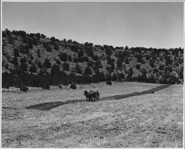 | Keywords: El Cerrito, San Miguel County, New Mexico. The staple crops in El Cerrito are corn, beans and alfal . . . - NARA - 521208.tif Scope and content Full caption reads as follows El Cerrito San Miguel County New Mexico The staple crops in El Cerrito are corn beans and alfalfa Almost everything is grown on irrigated land although there are a few fields on the mesa where a certain amount of dry farming is carried on Most of the corn is of the native blue type which was first grown here by the Indians Some of the other types of corn are fed to stock but never the blue Alfalfa produces more feed per acre than any other plant and for this reason more than half the irrigated land is devoted to this crop There is little commercial farming in the village A few sacks of beans or bushels of peaches are sold each year and two families have small flocks of sheep which brings in a little money - but for the most part the emphasis here is on subsistence farming Food is produced for home consumption Even the livestock economy is at the subsistence level with each family owning one or two horses a cow or steer eight or ten chickens and perhaps a pig Money when there is any comes from outside work Now in April the Spring plowing begins General notes 521208 Local identifier 83-G-37856 Department of Agriculture Bureau of Agricultural Economics Division of Economic Information ca 1922 - ca 1953 NARA-Author Rusinow Irving Photographer 5307166 <br /> Still Picture Records Section Special Media Archives Services Division NWCS-S National Archives at College Park 8601 Adelphi Road College Park MD 20740-6001 1941 04 10 - 1941 04 16 Record group Record Group 83 Records of the Bureau of Agricultural Economics 1876 - 1959 Record group ARC 412 Photographic Prints Documenting Programs and Activities of the Bureau of Agricultural Economics and Predecessor Agencies compiled ca 1922 - ca 1947 documenting the period ca 1911 - ca 1947 Series ARC 521048 File unit File unit ARC Variant control numbers NAIL Control Number NWDNS-83-G-37856 yes Other versions <gallery> File El_Cerrito _San_Miguel_County _New_Mexico _The_staple_crops_in_El_Cerrito_are_corn _beans_and_alfal_ _ _ _-_NARA_-_521208 tif tif File El_Cerrito _San_Miguel_County _New_Mexico _The_staple_crops_in_El_Cerrito_are_corn _beans_and_alfal_ _ _ _-_NARA_-_521208 jpg jpg </gallery> NARA-cooperation PD-USGov NARA TIF images with categorized JPGs NARA images of New Mexico Irving Rusinow Agriculture in New Mexico Plowing with horses Fields in the United States 1941 in New Mexico El Cerrito New Mexico Black and white photographs of New Mexico April 1941 |