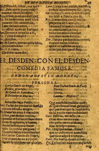| Keywords: El desdén, con el desdén 1677.jpg es Incipit f 41r de la comedia El desdén con el desdén en la 2ª ed de Moreto Agustín 1618-1669 http //bdh bne es/bnesearch/detalle/2703754 Primera parte de comedias de Don Agustín Moreto y Cabaña Madrid Andrés García de la Iglesia 1677 Digitalización de la Biblioteca Virtual Miguel de Cervantes Alicante 2009 a partir de un http //www cervantesvirtual com/obra-visor/primera-parte-de-comedias-de-don-agustin-moreto-y-cabana--0/html/ ejemplar conservado en la Biblioteca del Centro de Documentación y Museo de las Artes Escénicas del Instituto del Teatro de Barcelona Sig 59198 Sig 59209 http //www cervantesvirtual com/obra-visor/primera-parte-de-comedias-de-don-agustin-moreto-y-cabana--0/html/022077c8-82b2-11df-acc7-002185ce6064_96 htm Andrés García de la Iglesia editor Agustín Moreto autor del texto 1677 Agustín Moreto Literature of Spain 1677 books PD-old-100 |