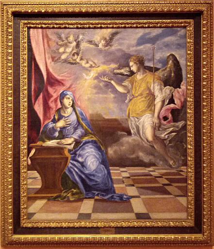| Keywords: El Greco - The Annunciation.jpg Artwork Q5411596 creator El Greco La obra representa el momento en que el Arcángel San Gabriel anunció a la Virgen María que sería la madre de Jesucristo el Mesías ca 1576 oil on canvas cm 117 98 Institution Museo Thyssen-Bornemisza http //www museothyssen org/thyssen/ficha_obra/375 Place of creation Rome Accession number Nº INV 172 1975 35 http //www museothyssen org/thyssen_ing/coleccion/ficha690 htm PD-old-100 cc-by-sa-4 0 The Annunciation by El Greco Thyssen-Bornemisza Museum |