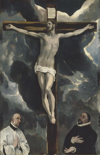 | Keywords: El Greco - Cristo en la cruz adorado por dos donantes (Musée du Louvre).jpg Artwork Creator El Greco c 1580 Oil on canvas size cm 248 180 Institution Louvre 1 26 http //cartelen louvre fr/cartelen/visite srv car_not_frame idNotice 611 langue fr Musée du Louvre Paris object history Acquis en 1908 credit line accession number R F 1713 http //www sothebys com/de/auctions/ecatalogue/2013/old-master-british-paintings-evening-l13033/lot 34 html Sotheby's not for sale only as a reference PD-old-100 Christ on the Cross adored by two Donor El Greco |