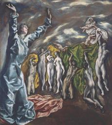 | Keywords: El Greco - The Vision of Saint John.jpg  The Vision of Saint John or The Opening of the Fifth Seal 1608-1614 creator El Greco oil canvas top truncated 87 1/2 x 76in 222 3 x 193cm ; with added strips 88 1/2 x 78 1/2 in 224 8 x 199 4 Met New York City art database 56 48 Credit line Rogers Fund 1956 PD-old-100 The Vision of Saint John by El Greco  |