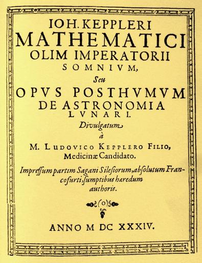 | Keywords: El Sueño o la Astronomía de la Luna.jpg Book es Portada del cuento El Sueño o la Astronomía de la Luna de Johannes Kepler Johannes Kepler 1571-1630 astrónomo alemán escribió un cuento llamado El Sueño o la Astronomía de la Luna 1630 considerado uno de los primeros cuentos de ciencia ficción En el cuento Kepler denomina a la Tierra llamada por los lunáticos Volva porque gira cada 24 hs y 52 mins y al hemisferio lunar visible desde la Tierra lo llama Subvolva y al invisible Privolva El personaje de la ficción se llama Duracoto y su madre Fiolxhilde una bruja que con sus conjuros logra que Duracoto viaje hacia la Isla de Levania Lebana Luna en hebreo y pueda describir la astronomía desde aquel lugar Los viajes desde Volva Tierra hacia Levania Luna se deben efectuar en un eclipse de Luna es decir viajar en el cono de sombra de Volva y los viajes de regreso a Volva Tierra a traves del cono de sombra de Levania Luna o sea en un eclipse de Sol En realidad en la vida personal de Kepler su madre Katharina Guldenmann fue perseguida por la Inquisición por practicar brujerías y fue salvada de la hoguera por las influencias de su hijo siendo astrónomo real Somnium El Sueño o la Astronomía de la Luna Traductorː Francisco Socas Editorialː Universidad de Huelva Publicaciones 1634 PD-old-auto-1923 1634 PD-old-100 Johannes Kepler 1634 book covers |