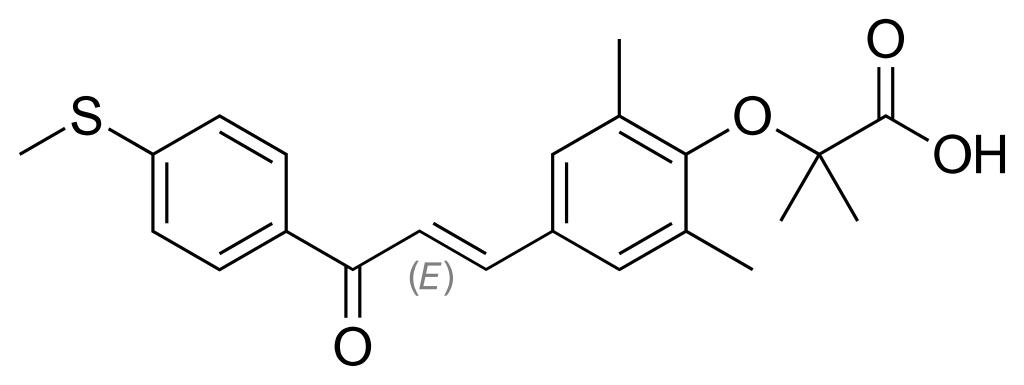 | Keywords: Elafibranor.svg elafibranor code name GFT505 own based on cite journal http //www biomdl com/wp-content/uploads/2013/03/GFT505_DrugFut2012 8P555 pdf GFT-505 Drugs of the Future 2012 37 8 555 “559 Anypodetos 2013-03-31 v Cc-zero Alkene derivatives Carboxylic acids Dual and pan PPAR agonists Methyl ethers Phenol ethers Thiophenol ethers Xylenes |