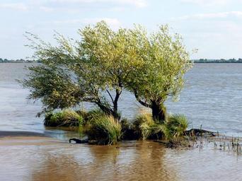 Keywords: elbe beach elbe bank ebb nature water river landscape landscape green trees river northern germany sky walk on the beach riverside sand summer