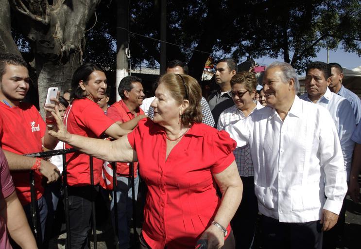 Keywords: groupshot people outdoor Primera Dama Margarita de Sánchez y El Presidente Salvador Sánchez Cerén Saludan luego de emitir su votó. Primera Dama Margarita de Sánchez y El Presidente Salvador Sánchez Cerén Saludan luego de emitir su votó.