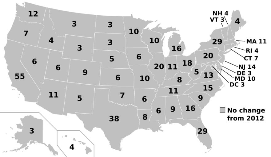 Keywords: Electoral College 2016.svg US Census Bureau <br><font color FF0000 >This file only shows the electoral votes Please update real-time results here </font> es Mapa del colegio electoral para las elecciones presidenciales de Estados Unidos de 2012 2016 y 2020 a partir de datos prorrateados dadas a conocer por la Oficina de Censos de Estados Unidos 2013-03-14 15 50 52 US Census Bureau USCB Original Cg-realms <br>Derivative work Ali Zifan other fields U 1 + m Custom license marker 2013 03 14 PD-USGov Blank electoral vote maps of the United States SVG maps of the United States 2010 United States Census 2016 U S presidential election maps