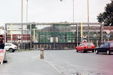 | Keywords: Elefantentor1.jpg Das so genannte Elefantentor in Staaken Berlin hier Blick durchs geschlossene Tor nordwärts ehemals Teil der Sperranlagen zwischen dem Kontroll-Bahnhaltepunkt Staaken und der Mauer zwischen West- und Ost-Staaken Der Bahnhof Staaken für den Personenverkehr war östlich der Grenzkontrollbahnhof Staaken westlich dieses Punktes Die Absperrung verlief wie eine Ausstülpung von der Mauer aus westwärts bis zum Kontrollhalt in Staaken Im Verlauf der damaligen Neuen Straße jetziger Name Am alten Gaswerk in die früher kurz vorm Bahnhübergang die inzwischen rückgebaute Staakener Feldstraße einmündete südlich der Bahn und dem Oberdorfer Steig nördlich der Bahn bestand ein Bahnübergang der auch diese ausgestülpten Sperranlagen querte Die Schiebetore in den Sperranlagen beiderseits der Gleise hießen im Volksmund Elefantentor Das Elefantentor fungierte auch nach Abbau der Sperranlagen weiter wie ein beschrankter Bahnübergang Nach 1996 wurden der Kontroll-Bahnhaltepunkt und der à bergang mit dem Elefantentor abgebrochen Jetzt besteht an dieser Stelle nurmehr eine Fußgängerunterführung en The so-called Elefantentor Elephants' Gate in Staaken Berlin here closed was once part of the barrier and fences which stretched along the rail tracks between the actual Berlin Wall between East and West Staaken and the East German border crossing control station of Staaken From the point in the Berlin Wall were the tracks left West Berlin's Staaken into East German Staaken the barriers turned inwards East Germany along the tracks up to the control station of East German Staaken However in the course of the then Neue Straße now Am alten Gaswerk south of the tracks and the Oberdorfer Steig north of the tracks there was a railway crossing passing the tracks and the adjacent barrier fences The two huge sliding gates in the course of barrier fences along both sides of the tracks were nicknamed Elephants' Gate by the Staakeners After the removal of most of the barriers after 1989 the Elephants' Gate remained since it also functioned as railway gate at this level crossing After 1996 the level crossing and the control station were removed Today there is only a pedestrain underpass at this place Own BajanZindy 1991 All rights released thumb the open Elefantentor Abolished level crossings Berlin Staaken Bahnhof Berlin-Staaken Elefantentor Berlin Wall Berlin Staaken Elefantentor Level crossing barriers Berlin Staaken Level crossings in Berlin Staaken Elefantentor Am alten Gaswerk Berlin Elefantentor |