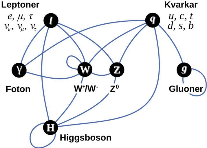 | Keywords: Elementary particle interactions-sv.svg A diagram summarizing the tree-level interactions between elementary particles described in the Standard Model Vertices darkened circles represent types of particles and edges blue arcs connecting them represent interactions that can take place The organization of the diagram is as follows the top row of vertices leptons and quarks are the matter particles; the second row of vertices photon W/Z gluons are the force mediating particles; and the bottom row is the Higgs boson Elementary_particle_interactions svg 2010-01-19 23 15 UTC Elementary_particle_interactions svg en User TriTertButoxy User Stannered derivative work Inteloutside2 <span class signature-talk >talk</span> Elementary_particle_interactions svg PD-user-en PD-user-w original upload log This image is a derivative work of the following images File Elementary_particle_interactions svg licensed with PD-user-en PD-user-w 2008-02-24T15 59 55Z Stannered 775x555 35614 Bytes <nowiki>adding W self-interaction</nowiki> 2008-02-03T17 52 30Z Stannered 775x555 37690 Bytes <nowiki>MediaWiki has no unicode TNR equivalent when will they install FreeSerif </nowiki> 2008-02-03T17 51 31Z Stannered 775x555 22110 Bytes <nowiki> A diagram summarizing the tree-level interactions between elementary particles described in the Standard Model Vertices darkened circles represent types of particles and edges blue arcs connec</nowiki> Uploaded with derivativeFX Standard Model physics Higgs boson |