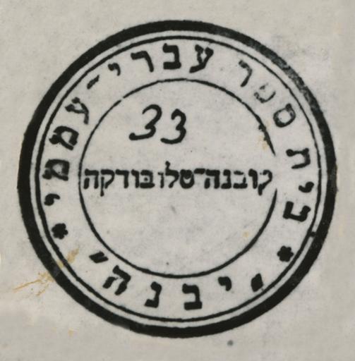 | Keywords: hardware = epson expression 100 hardwareepsonexpression100 software = epson scan v2.20a an softwareepsonscanv220aan circle round dial Founded in Vilna in 1902, Mizrahi was an Orthodox Zionist movement whose slogan was “The Land of Israel for the People of Israel according to the Torah of Israel” – contrary to many Zionist movements’ secular focus, Mizrahi rooted its ideology in religious interpretation. In its early years Mizrahi experienced significant growth with more than two hundred branches of the organization springing up across regions of Eastern Europe – representing some 11,000 members. The size and influence of Mizrahi ebbed and flowed throughout the early 1900s as the organization struggled with political repression and as it competed with other Zionist organizations for influence. While the youth movement affiliated with the organization – Tse’ire Mizrahi – was active in promoting immigration to Palestine, the larger organization’s activities were focused around Judaic and Hebrew education as well as holding prayer services. Mizrahi was active in setting up educational institutions across many regions in Eastern Europe, these schools were known as the “Yavneh” school network. Home to a vibrant – as well as religiously and politically diverse – Jewish community, Kovno had a variety of different schools run by a range of different organizations; and as this book stamp makes clear this included an elementary school from the Yavneh network located in Slobodka, a community on the Eastern side of the Neris River. Slobodka was the main site of the Kovno ghetto. This book stamp is from a book looted by the Nazis and sorted by Colonel Seymour Pomrenze, one of “the Monuments Men,” at the Offenbach Archival Depot. There are two scrapbooks of archival markings from the books sorted at the Offenbach Depot in the Seymour Pomrenze Collection held by the American Jewish Historical Society (Call number P-933) There is a finding aid for the collection here The digitized scrapbooks are available here and here. For more information on this project check the Center’s blog: 16thstreet.tumblr.com/tagged/Offenbach-Depot Dr. Mitch Fraas, Acting Director of the Digital Humanities Forum at the University of Pennsylvania Libraries' Special Collections Center is working on a similar project for the German book stamps based on NARA microfilm of the volumes the American Jewish Historical Society currently holds. See viewshare.org/views/mfraas/offenbach-bookplates/ The Center for Jewish History would like to acknowledge the following: The American Jewish Historical Society, who graciously allowed the use of their archival materials and digital content; Mitch Fraas, Acting Director of the Digital Humanities Forum at the University of Pennsylvania Libraries' Special Collections Center, for his data and technical assistance in this project; David Rosenberg, Reference Services Research Coordinator, and Melanie Meyers, Senior Reference Services Librarian for Special Collections, for managing and creating the digital map; and Reference Services Librarian Ilya Slavutskiy for his work on translating and mapping. For copyright information, click here Founded in Vilna in 1902, Mizrahi was an Orthodox Zionist movement whose slogan was “The Land of Israel for the People of Israel according to the Torah of Israel” – contrary to many Zionist movements’ secular focus, Mizrahi rooted its ideology in religious interpretation. In its early years Mizrahi experienced significant growth with more than two hundred branches of the organization springing up across regions of Eastern Europe – representing some 11,000 members. The size and influence of Mizrahi ebbed and flowed throughout the early 1900s as the organization struggled with political repression and as it competed with other Zionist organizations for influence. While the youth movement affiliated with the organization – Tse’ire Mizrahi – was active in promoting immigration to Palestine, the larger organization’s activities were focused around Judaic and Hebrew education as well as holding prayer services. Mizrahi was active in setting up educational institutions across many regions in Eastern Europe, these schools were known as the “Yavneh” school network. Home to a vibrant – as well as religiously and politically diverse – Jewish community, Kovno had a variety of different schools run by a range of different organizations; and as this book stamp makes clear this included an elementary school from the Yavneh network located in Slobodka, a community on the Eastern side of the Neris River. Slobodka was the main site of the Kovno ghetto. This book stamp is from a book looted by the Nazis and sorted by Colonel Seymour Pomrenze, one of “the Monuments Men,” at the Offenbach Archival Depot. There are two scrapbooks of archival markings from the books sorted at the Offenbach Depot in the Seymour Pomrenze Collection held by the American Jewish Historical Society (Call number P-933) There is a finding aid for the collection here The digitized scrapbooks are available here and here. For more information on this project check the Center’s blog: 16thstreet.tumblr.com/tagged/Offenbach-Depot Dr. Mitch Fraas, Acting Director of the Digital Humanities Forum at the University of Pennsylvania Libraries' Special Collections Center is working on a similar project for the German book stamps based on NARA microfilm of the volumes the American Jewish Historical Society currently holds. See viewshare.org/views/mfraas/offenbach-bookplates/ The Center for Jewish History would like to acknowledge the following: The American Jewish Historical Society, who graciously allowed the use of their archival materials and digital content; Mitch Fraas, Acting Director of the Digital Humanities Forum at the University of Pennsylvania Libraries' Special Collections Center, for his data and technical assistance in this project; David Ro
