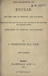 Keywords: Elements title page.jpg This is the title page of The Elements of Euclid for the Use of Schools and Colleges 1872 It was translated by Issac Todhunter The image comes from Archive org Archive org Issac Todhunter The Elements of Euclid for the Use of Schools and Colleges PD-old |