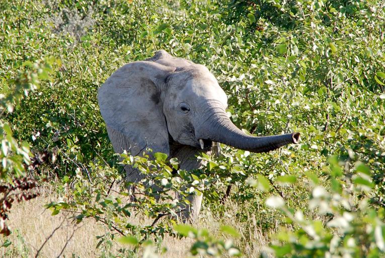 Keywords: elephant proboscis young animal africa safari namibia etosha national park animals