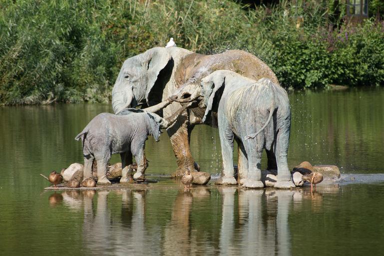 Keywords: elephants sculpture water knuthenborg river lake nature animals