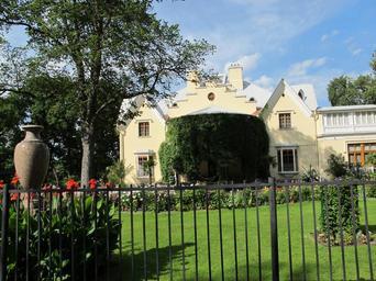 Keywords: Elfdalensky vase and Cottage Palace.JPG По фи овая ваза в па ке Александ ия и южный фасад дво ца Коттедж Own 2011-08 user AndreyA Elfdalensky vase in Alexandria Park Cottage Palace