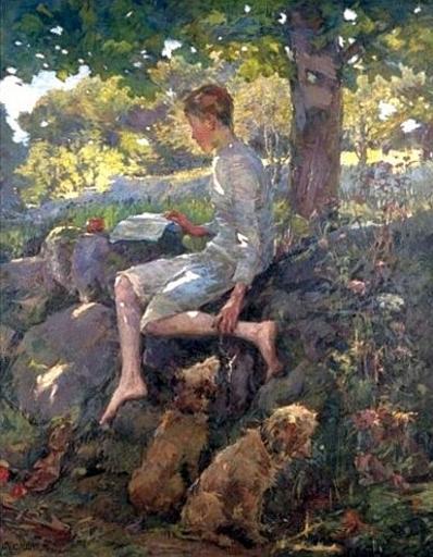 | Keywords: Elizabeth Adela Forbes - The Half Holiday.jpg The Half Holiday - Alec Home From School oil on canvas 122c x 97 cm Creator Elizabeth Adela Forbes photographical reproduction in the public domain PD-old-auto 1912 Elizabeth Adela Forbes Reading in art |