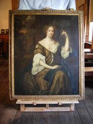 | Keywords: picture frame Elizabeth de Carteret, was daughter of Philippe de Carteret II, 3rd Seigneur de Sark. She married her cousin Sir George Carteret, 1st Baronet, a royalist statesman in Jersey and England, who served in the Clarendon Ministry as Treasurer of the Navy. He was also one of the original Lords Proprietor of the Carolina colony. Her eldest son,Sir Philip Carteret Kt FRS (1641–1672), was elected Fellow of the Royal Society on the 15th February 1665. He married Jemima Montagu, daughter of Edward Montagu, 1st Earl of Sandwich, in an arranged marriage on 31 July 1665. Samuel Pepys had a hand in the marriage and wrote of it at some length in his diary. Jemima had only known of Philip some fourteen days before their marriage. It is noted that Jemima failed to arrive in time for the ceremony at the church. Philip was father of four children, including George Carteret, 1st Baron Carteret. Knighted in 1667, he became Gentleman of the Kings Chamber in 1670. Philip died along with his father-in-law the Earl of Sandwich when their ship, the Prince Royal, was grappeled by a Dutch fire ship in the Battle of Solebay. Elizabeth de Carteret, was daughter of Philippe de Carteret II, 3rd Seigneur de Sark. She married her cousin Sir George Carteret, 1st Baronet, a royalist statesman in Jersey and England, who served in the Clarendon Ministry as Treasurer of the Navy. He was also one of the original Lords Proprietor of the Carolina colony. Her eldest son,Sir Philip Carteret Kt FRS (1641–1672), was elected Fellow of the Royal Society on the 15th February 1665. He married Jemima Montagu, daughter of Edward Montagu, 1st Earl of Sandwich, in an arranged marriage on 31 July 1665. Samuel Pepys had a hand in the marriage and wrote of it at some length in his diary. Jemima had only known of Philip some fourteen days before their marriage. It is noted that Jemima failed to arrive in time for the ceremony at the church. Philip was father of four children, including George Carteret, 1st Baron Carteret. Knighted in 1667, he became Gentleman of the Kings Chamber in 1670. Philip died along with his father-in-law the Earl of Sandwich when their ship, the Prince Royal, was grappeled by a Dutch fire ship in the Battle of Solebay. |