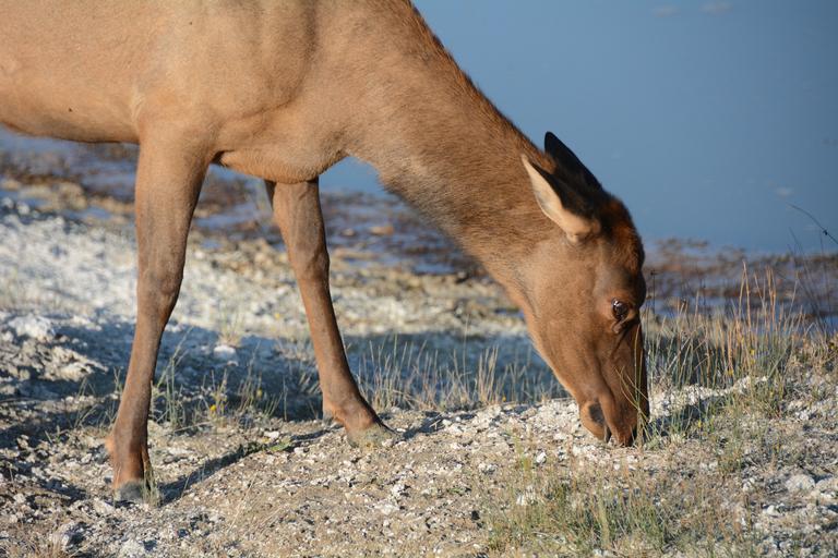 Keywords: elk female mammal nature wildlife animal feeding west thumb yellowstone yellowstone lake wyoming tourist attraction yellowstone national park natural scenery