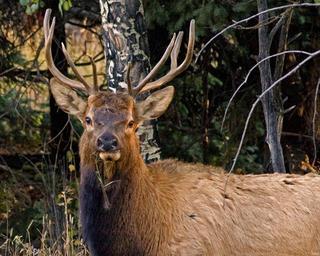 Keywords: elk stag close up wildlife rack antlers portrait feeding head