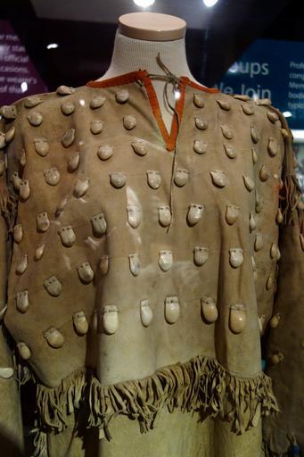 Keywords: Elk-teeth dress, view 1, Sioux or Lakota peoples, late 19th to early 20th century, hide, glass, teeth, bone, cotton - Fernbank Museum of Natural History - DSC00121.JPG en Exhibit in the Fernbank Museum of Natural History Atlanta Georgia USA Photography was permitted in the museum without restriction 2012-03-17 00 58 04 own Daderot cc-zero Ethnographic items in the Fernbank Museum of Natural History Uploaded with UploadWizard Sioux artefacts |