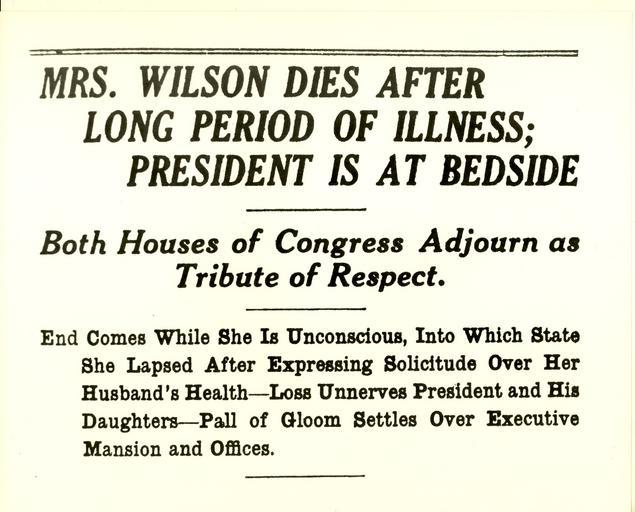 Keywords: ellen axson wilson ellenaxsonwilson death text Local Accession Number: 2166 Description: Mrs. Wilson's death brings "pall of gloom" over President Wilson and his family. Photographer: N/A Source: Unknown Size: 8x10 Medium: Print, Black and White Date: 1914 Local Accession Number: 2166 Description: Mrs. Wilson's death brings "pall of gloom" over President Wilson and his family. Photographer: N/A Source: Unknown Size: 8x10 Medium: Print, Black and White Date: 1914 |