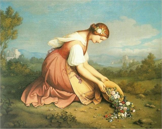 | Keywords: Ellenrieder Kniendes Mädchen.jpg Artwork en Girl on here knees discharges a flower basket de Kniendes Mädchen einen Blumenkorb ausschüttend 1841 Oil on canvas Eigener Scan aus Baden-Württembergische Portraits ISBN 3-421-05271-9 S 105 Archiv für Kunst und Geschichte Berlin other versions PD-old-100 Marie Ellenrieder 1841 oil on canvas paintings 19th-century oil paintings of women at full length Females in profile in art Females looking down in art Paintings of people in nature People with green background in art People with blue background 19th-century paintings of kneeling women |