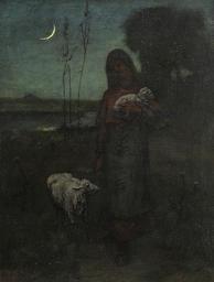 Keywords: Elliott Daingerfield - Shepherdess (1889).jpg Artwork Creator Elliott Daingerfield 1889 oil on canvas in 21 16 accession number object history Coggins Collection of American Art lot 1021;<br/>Knoke Galleries Atlanta Georgia labels verso ;<br/>Property from an Edenton North Carolina Collection credit line exhibition history E Daingerfield 89 ~ lower right signature and date http //www liveauctioneers com/item/15199622_elliott-daingerfield Brunk auctions Asheville NC Jan 13 2013 lot 1164 via liveauctioneers com PD-old-auto-1923 1932 DEFAULTSORT Daingerfield Elliott; Shepherdess 1889; Brunk auctions 2013 Paintings by Elliott Daingerfield Pastoral portraits 1880s portrait paintings Paintings of women with animals |