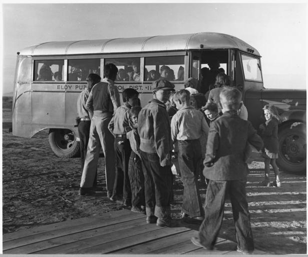 | Keywords: Eloy District, Pinal County, Arizona. Children in a democracy. Bus carries migratory cotton pickers' . . . - NARA - 522028.jpg Scope and content Full caption reads as follows Eloy District Pinal County Arizona Children in a democracy Bus carries migratory cotton pickers' children from FSA mobile camp for migratory laborers to the district school -- 7 30 A M General notes 522028 Local identifier 83-G-41823 Department of Agriculture Bureau of Agricultural Economics Division of Economic Information ca 1922 - ca 1953 NARA-Author Lange Dorothea 1895-1965 Photographer 1372774 <br /> Still Picture Records Section Special Media Archives Services Division NWCS-S National Archives at College Park 8601 Adelphi Road College Park MD 20740-6001 11/1940 Record group Record Group 83 Records of the Bureau of Agricultural Economics 1876 - 1959 Record group ARC 412 Photographic Prints Documenting Programs and Activities of the Bureau of Agricultural Economics and Predecessor Agencies compiled ca 1922 - ca 1947 documenting the period ca 1911 - ca 1947 Series ARC 521048 File unit File unit ARC Variant control numbers NAIL Control Number NWDNS-83-G-41823 Other versions <gallery> File Eloy_District _Pinal_County _Arizona _Children_in_a_democracy _Bus_carries_migratory_cotton_pickers'_ _ _ _-_NARA_-_522028 tif tif File Eloy_District _Pinal_County _Arizona _Children_in_a_democracy _Bus_carries_migratory_cotton_pickers'_ _ _ _-_NARA_-_522028 jpg jpg </gallery> NARA-cooperation PD-USGov Dorothea Lange Eloy Arizona |
