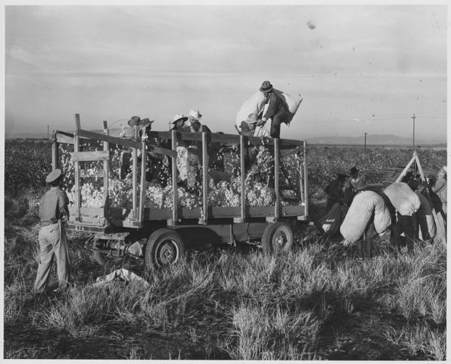 | Keywords: Eloy District, Pinal County, Arizona. At the cotton wagon. Weighing and dumping cotton sacks at the . . . - NARA - 522549.jpg Scope and content Full caption reads as follows Eloy District Pinal County Arizona At the cotton wagon Weighing and dumping cotton sacks at the end of the day General notes 522549 Local identifier 83-G-44380 Department of Agriculture Bureau of Agricultural Economics Division of Economic Information ca 1922 - ca 1953 NARA-Author Lange Dorothea 1895-1965 Photographer 1372774 <br /> Still Picture Records Section Special Media Archives Services Division NWCS-S National Archives at College Park 8601 Adelphi Road College Park MD 20740-6001 11/1940 Record group Record Group 83 Records of the Bureau of Agricultural Economics 1876 - 1959 Record group ARC 412 Photographic Prints Documenting Programs and Activities of the Bureau of Agricultural Economics and Predecessor Agencies compiled ca 1922 - ca 1947 documenting the period ca 1911 - ca 1947 Series ARC 521048 File unit File unit ARC Variant control numbers NAIL Control Number NWDNS-83-G-44380 Other versions <gallery> File Eloy_District _Pinal_County _Arizona _At_the_cotton_wagon _Weighing_and_dumping_cotton_sacks_at_the_ _ _ _-_NARA_-_522549 tif tif File Eloy_District _Pinal_County _Arizona _At_the_cotton_wagon _Weighing_and_dumping_cotton_sacks_at_the_ _ _ _-_NARA_-_522549 jpg jpg </gallery> NARA-cooperation PD-USGov Dorothea Lange Eloy Arizona Weighing scales in the United States 1940 in Arizona November 1940 in the United States Cotton sacks Wagons in the United States Agricultural transport Agricultural workers Men at work in the United States |