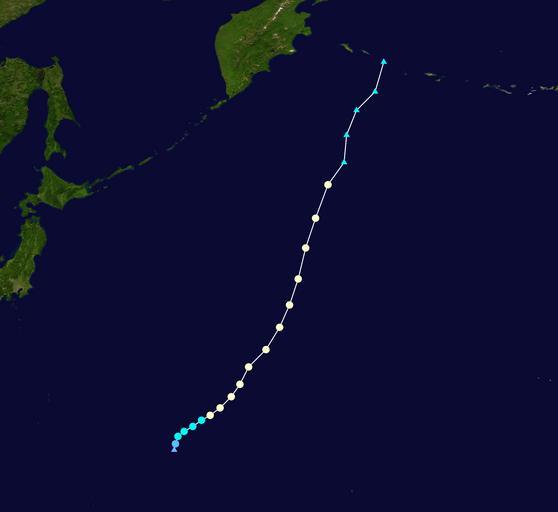 Keywords: Elsie 1958 track.png WPTC track map Supportstorm Typhoon Elsie Typhoon Elsie 1958 1958 Pacific typhoon season 1958-08-04 1958-08-10 from the IBTrACS 1958 Pacific typhoon season track maps /track --id 16 --name ELSIE --year 1958 --format hurdat2 --input WPAC HURDAT 2 WP161958 ELSIE 23 19580804 1200 LO 22 6N 152 3E 25 1006 -999 -999 -999 -999 -999 -999 -999 -999 -999 -999 -999 -999 19580804 1800 TD 23 1N 152 4E 30 1004 -999 -999 -999 -999 -999 -999 -999 -999 -999 -999 -999 -999 19580805 0000 TS 23 7N 152 6E 40 1002 -999 -999 -999 -999 -999 -999 -999 -999 -999 -999 -999 -999 19580805 0600 TS 24 1N 153 1E 55 992 -999 -999 -999 -999 -999 -999 -999 -999 -999 -999 -999 -999 19580805 1200 TS 24 5N 153 8E 60 989 -999 -999 -999 -999 -999 -999 -999 -999 -999 -999 -999 -999 19580805 1800 TS 25 0N 154 5E 60 986 -999 -999 -999 -999 -999 -999 -999 -999 -999 -999 -999 -999 19580806 0000 TY 25 4N 155 2E 65 983 -999 -999 -999 -999 -999 -999 -999 -999 -999 -999 -999 -999 19580806 0600 TY 26 0N 156 0E 75 981 -999 -999 -999 -999 -999 -999 -999 -999 -999 -999 -999 -999 19580806 1200 TY 26 9N 156 9E 75 980 -999 -999 -999 -999 -999 -999 -999 -999 -999 -999 -999 -999 19580806 1800 TY 27 9N 157 6E 75 978 -999 -999 -999 -999 -999 -999 -999 -999 -999 -999 -999 -999 19580807 0000 TY 29 3N 158 3E 75 973 -999 -999 -999 -999 -999 -999 -999 -999 -999 -999 -999 -999 19580807 0600 TY 30 7N 159 7E 75 971 -999 -999 -999 -999 -999 -999 -999 -999 -999 -999 -999 -999 19580807 1200 TY 32 5N 160 8E 75 969 -999 -999 -999 -999 -999 -999 -999 -999 -999 -999 -999 -999 19580807 1800 TY 34 3N 161 6E 75 967 -999 -999 -999 -999 -999 -999 -999 -999 -999 -999 -999 -999 19580808 0000 TY 36 4N 162 3E 75 972 -999 -999 -999 -999 -999 -999 -999 -999 -999 -999 -999 -999 19580808 0600 TY 38 9N 162 9E 70 979 -999 -999 -999 -999 -999 -999 -999 -999 -999 -999 -999 -999 19580808 1200 TY 41 3N 163 7E 65 980 -999 -999 -999 -999 -999 -999 -999 -999 -999 -999 -999 -999 19580808 1800 TY 44 0N 164 7E 65 982 -999 -999 -999 -999 -999 -999 -999 -999 -999 -999 -999 -999 19580809 0000 EX 45 8N 166 0E 55 983 -999 -999 -999 -999 -999 -999 -999 -999 -999 -999 -999 -999 19580809 0600 EX 48 0N 166 2E 50 985 -999 -999 -999 -999 -999 -999 -999 -999 -999 -999 -999 -999 19580809 1200 EX 50 0N 167 0E 35 990 -999 -999 -999 -999 -999 -999 -999 -999 -999 -999 -999 -999 19580809 1800 EX 51 5N 168 5E 35 990 -999 -999 -999 -999 -999 -999 -999 -999 -999 -999 -999 -999 19580810 0000 EX 53 9N 169 2E 35 992 -999 -999 -999 -999 -999 -999 -999 -999 -999 -999 -999 -999 |