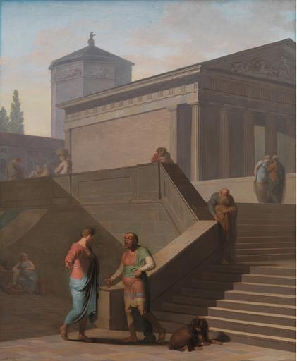 | Keywords: Elskeren Pamfilus i samtale med sin forslagne tjener Davus.jpg Artwork Creator Nicolai Abildgaard 1802 Oil canvas cm 157 5 128 5 institution Statens Museum for Kunst Copenhagen Sal 217B object history Købt 1849 Acquired 1849 exhibition history credit line Part of a series See KMS587 KMS589 and KMS590 accession number KMS588 http //soeg smk dk/vark asp ObjectId 4615 PD-old-100 Nicolai Abraham Abildgaard 1802 paintings Paintings in Statens Museum for Kunst Publius Terentius Afer Classicist history paintings |